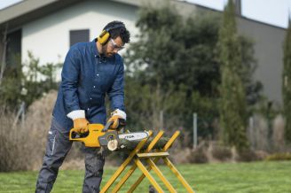 משור שרשרת "12 נטען 20V בראשלס + סוללה 5AH ומטען DeWalt DCCS620B