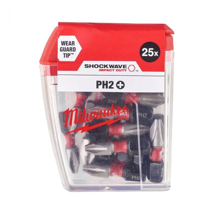 מארז ביטים 25 יחידות במידה Milwaukee ShockWave 4002395385157 PH2 x 25mm