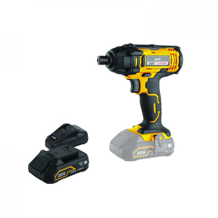 מברגת אימפקט נטענת 20V + סוללה 2A + מטען מהיר GPT TOT006