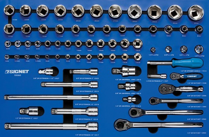 - סט מגש בוקסות ואביזרים "1/4 + 3/8 + "1/2 מבית SIGNET
