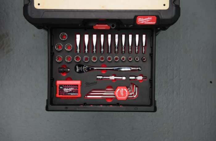 סט ראצ'ט, בוקסות ומפתחות אלן 70 חלקים במארז מבית Milwaukee, ארצות הברית.