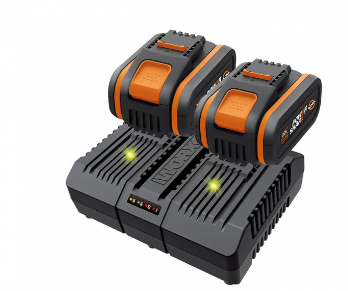 מטען כפול 20V לסוללות + 2 סוללות WORX WA3611 4.0Ah