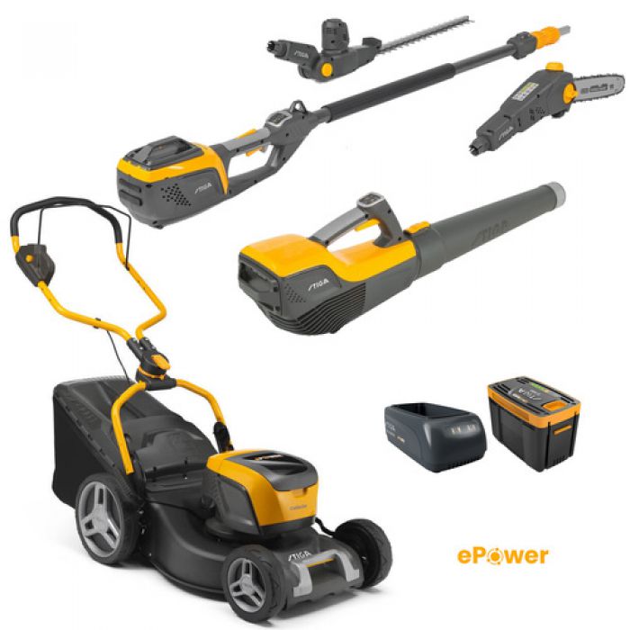 סט כלי גינון 48V מכסחת דשא + מפוח עלים + קומבי טלסקופי משולב + סוללה 4.0Ah + מטען STIGA