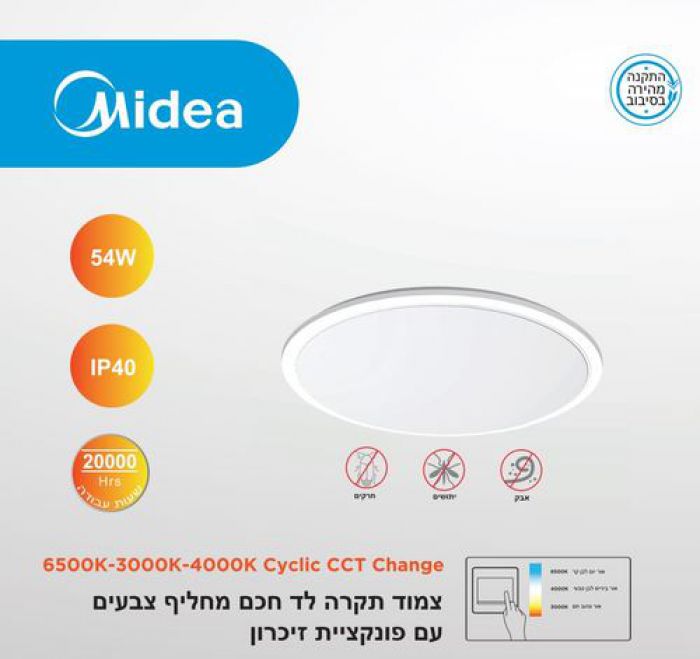 מנורה צמודת תקרה 54W מחליף צבעים גוף לבן קוטר 48 ס"מ Midea Lighthing