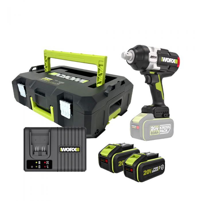 מפתח רטיטה "3/4 נטען 1700NM בראשלס + 2 סוללות 5Ah + מטען מהיר במזוודה WORX WU273 MEGA-FORCE