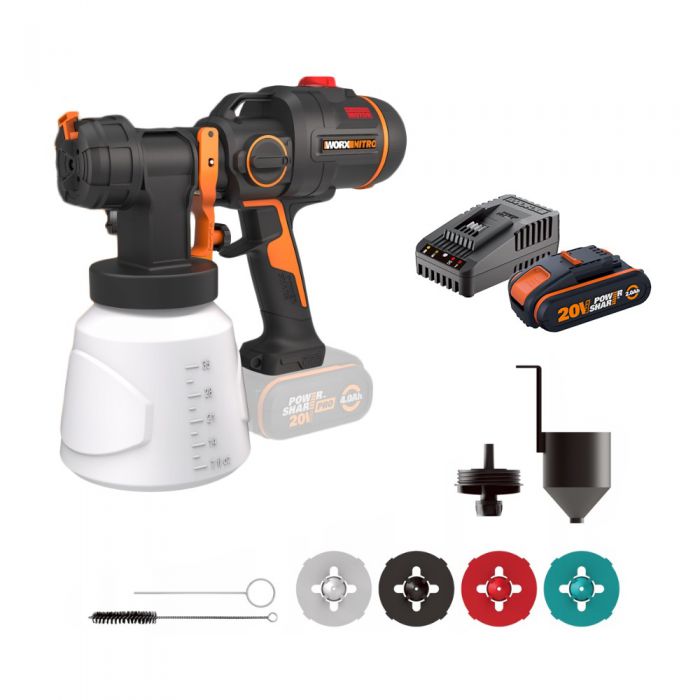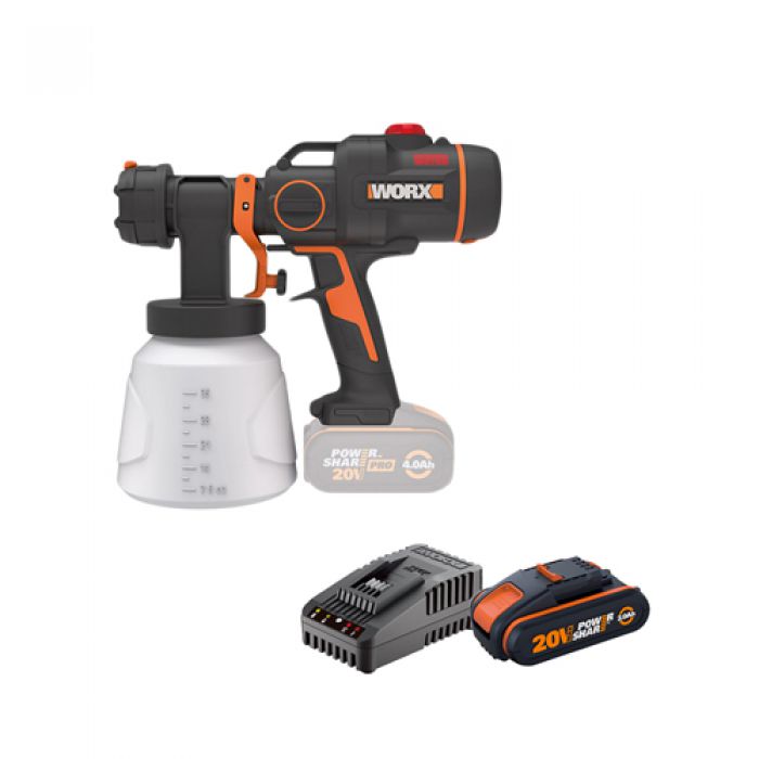 מרסס צבע נטען 20V + סוללה 2A 20V ומטען מהיר + אביזרים WORX WX020.9