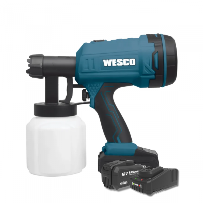 מרסס צבע נטען 18v + סוללה 4AH + מטען מהיר WESCO WS2342.9