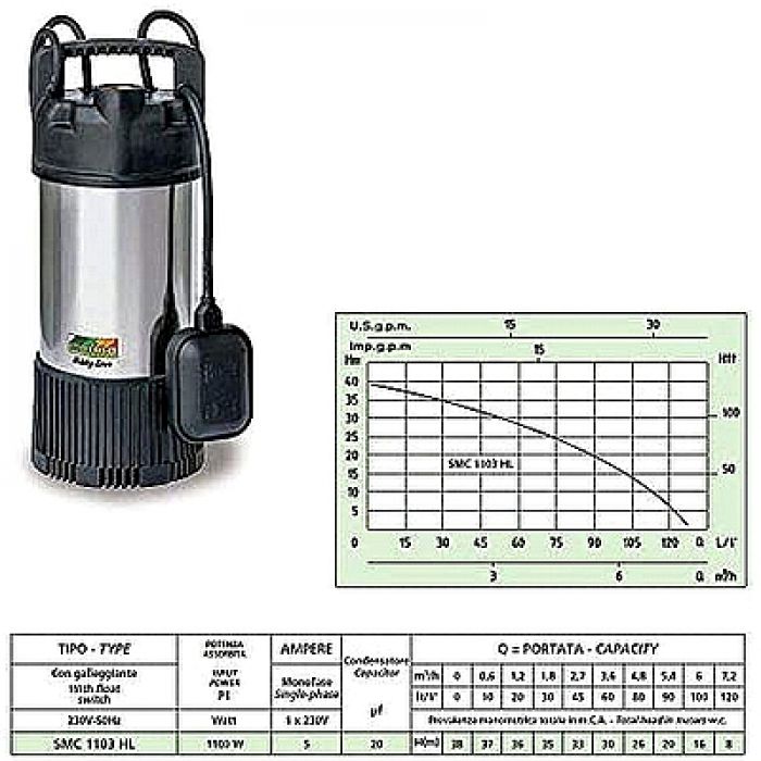 משאבת מים טבולה איטלקית מים נקיים Marina SMC1103HL 1100W