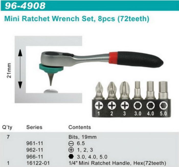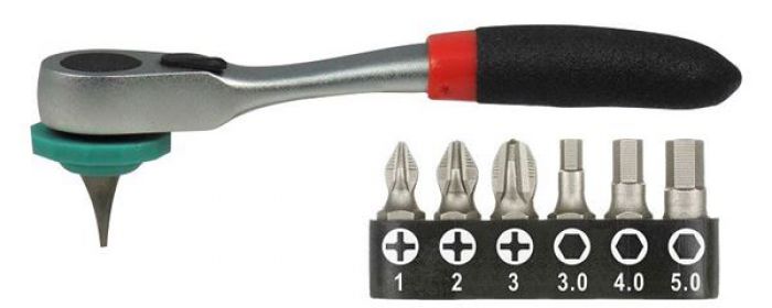 סט ביטים 8 יחידות עם ידית רצ'ט מניאטורית למקומות שהגישה קשה