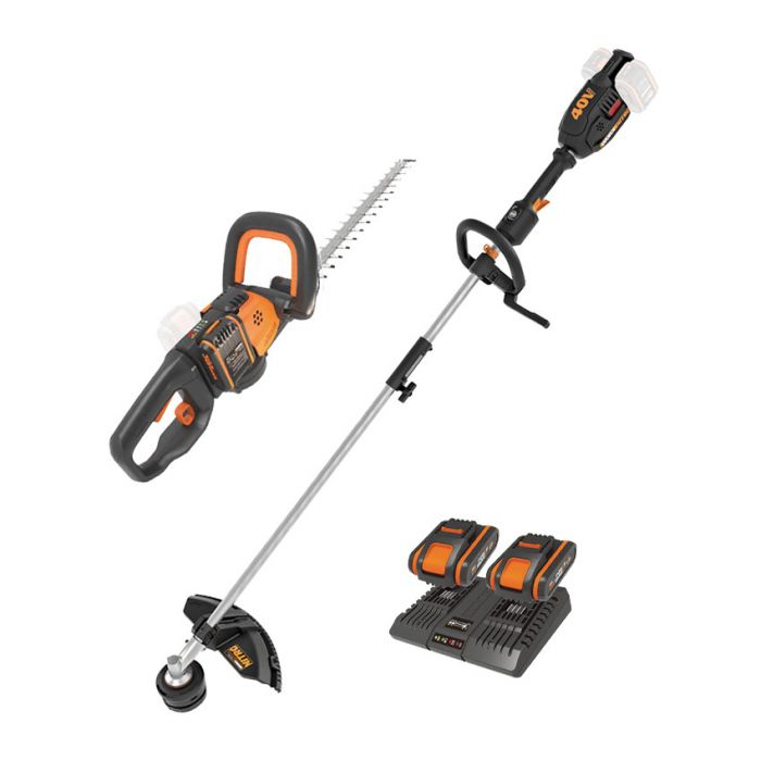 סט כלי גינון 40V קוצץ קנטים WG186E.9  + גוזם גדר חיה WG284E.9 נטען + 2 סוללות 2.0Ah + מטען כפול WORX