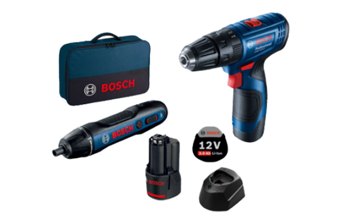 סט מברגה/מקדחה רוטטת 12V + מברג + 2 סוללות 2AH + מטען בתיק כלים BOSCH 19G8.124