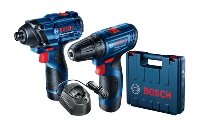 סט מברגות 12V כולל 2 סוללות 2AH + מטען במזוודה BOSCH GDR+GSR 120-LI 19G8.023