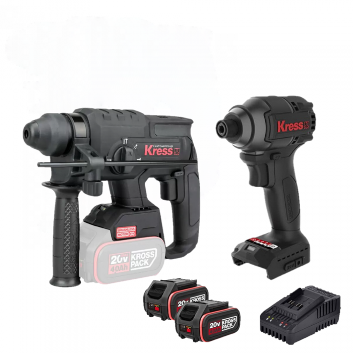 סט פטישון KU390 מברגת אימפקט KU280 + שני סוללות 4Ah + מטען KRESS H/KR007