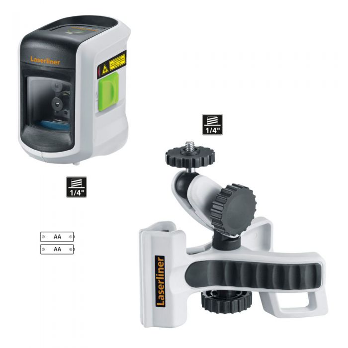 סט פלס לייזר צלב קומפקטי ירוק כולל מתקן תלייה/התקנה LaserLiner SmartVision-Laser set 081.336A
