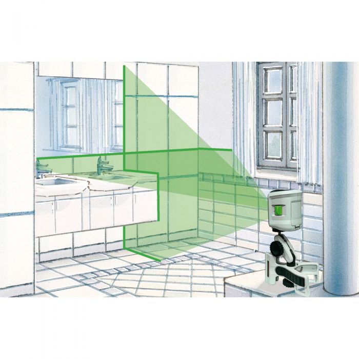 - פלס לייזר צלב מייצר שני קווי לייזר ירוקים הניתנים להחלפה בנפרד - מושלם ליישור מדויק של משטחים ומדרונות אופקיים ואנכיים.