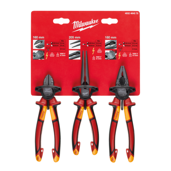 סט 3 חלקים - פלייר קטר ושפיץ פלייר בידוד עבה - Milwaukee 4932464575 VDE 1000V