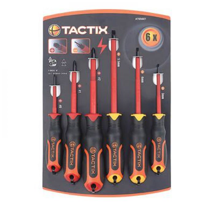- סט 6 מברגים מבודדים מיועד לעבודות חשמל עד מתח של 1000 וולט, עם אישור VDE, עשוי מפלסטיק גמיש ואיכותי לאחיזה נוחה מגיע באריזה 3 מברגי פיליפס מבודד.