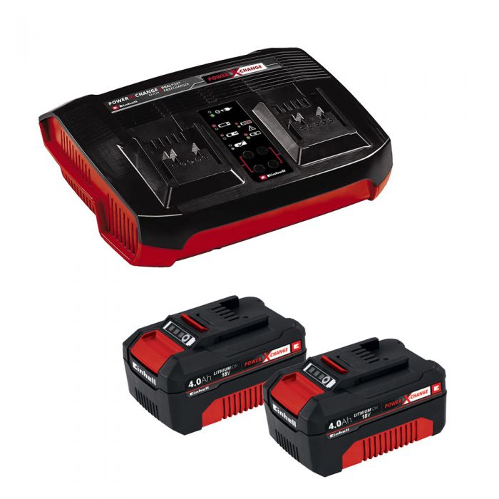 ערכת מטען כפול + 2 סוללות Einhell 18V 4AH