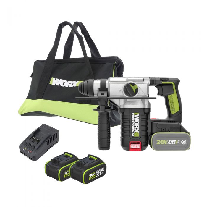 פטישון 24 מ"מ נטען 20V BL + שתי סוללות 4AH ומטען WORX WU388.9