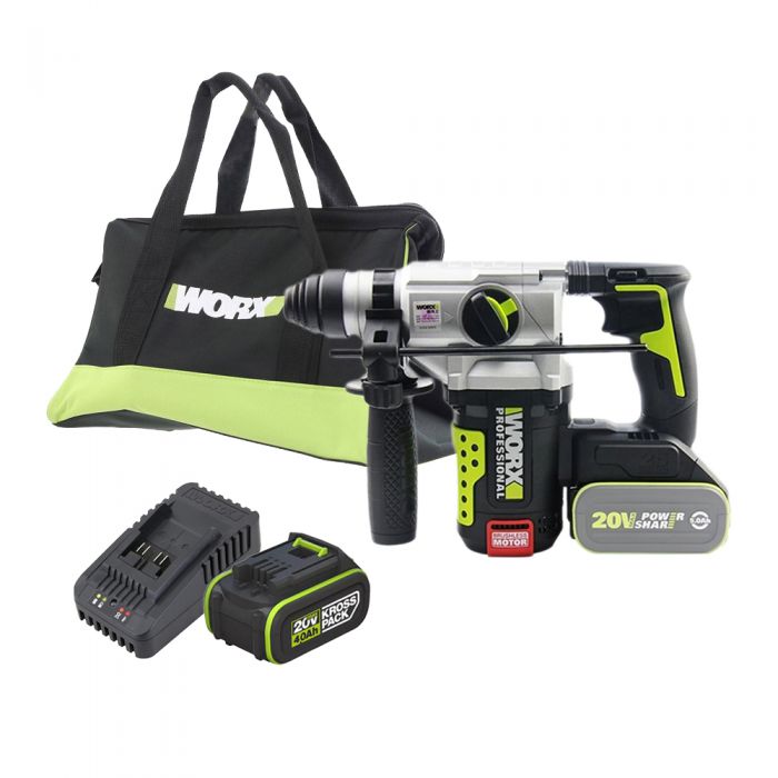 פטישון 26 מ"מ נטען 20V + סוללה 4AH ומטען בתיק נשיאה WORX WU389.9