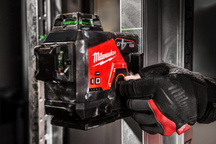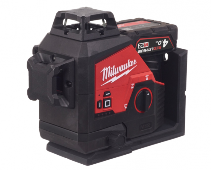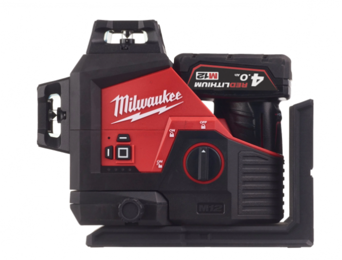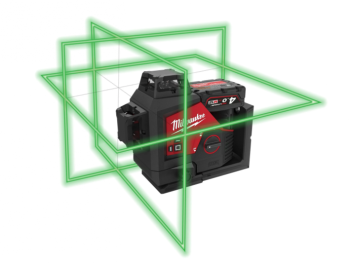 - פלס לייזר ירוק 3 קווים 12V נטען כולל סוללה 4 אמפר מטען במזוודה מבית Milwaukee ארה"ב