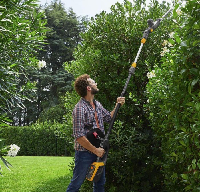 - כלי זה קל משקל ועוצמתי במיוחד. הקומבי כולל מוט הארכה טלסקופי מתכוונן, אביזר גיזום ואביזר ניסור.