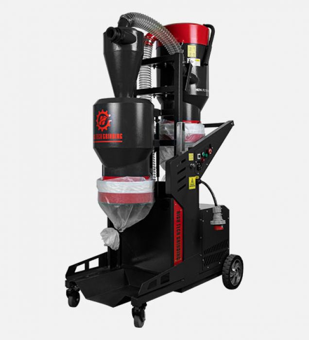 מערכת סינון דו‑שלבית עם פרה‑ספטור ציקלוני + פילטר HEPA 13 – אמינות > 99.99% בפילטרציה של חלקיקי אבק עד 0.2 מיקרון