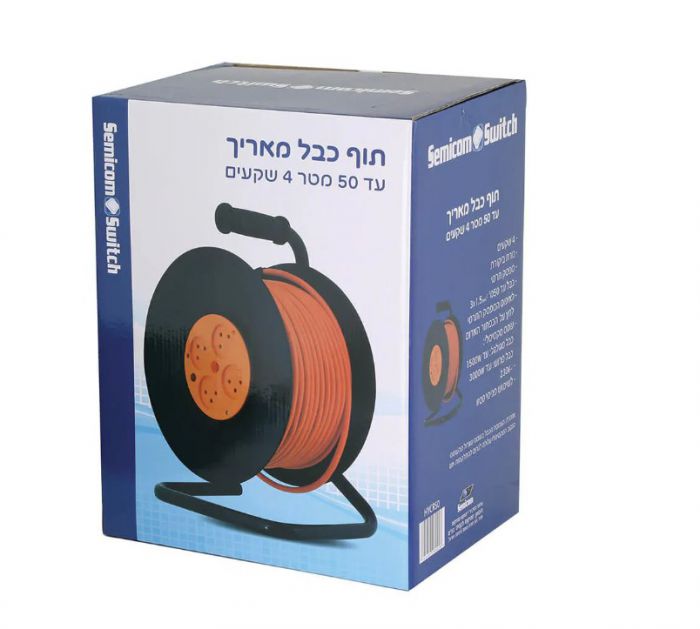 תוף כבל מאריך 50 מטר 4 שקעים Semicom-Switch HYCR50
